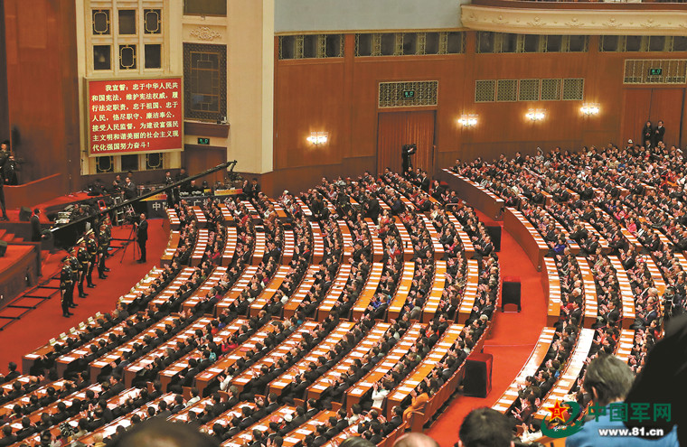 3月17日上午,十三届全国人大一次会议选举习近平为中华人民共和国主席、中华人民共和国中央军事委员会主席。当这一选举结果公布时,全场爆发出长时间热烈的掌声。解放军报记者 周朝荣摄