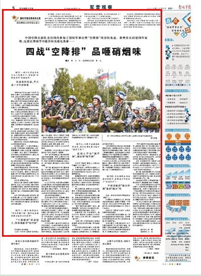 去年,在我国举行的“空降排”分组定位赛中,俄罗斯参赛队表现突出。在40平方公里的陌生赛场上,他们3个小时内找出了30个点位中的27个,仅次于“主场”作战的中国空降兵。