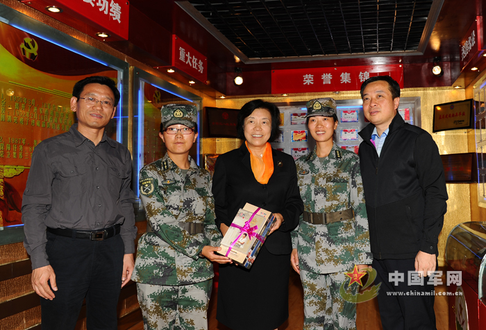 北京师范大学领导和专家教授为西藏军区某团女兵连赠送书籍。杨乾军摄