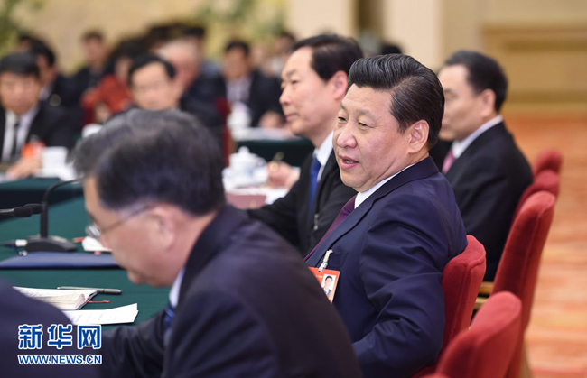 3月9日,中共中央总书记、国家主席、中央军委主席习近平参加十二届全国人大二次会议安徽代表团的审议。 新华社记者 李学仁 摄