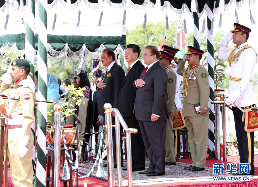 4月20日,国家主席习近平在巴基斯坦首都伊斯兰堡出席巴基斯坦总统侯赛因和总理谢里夫共同举行的欢迎仪式。 新华社记者 兰红光 摄