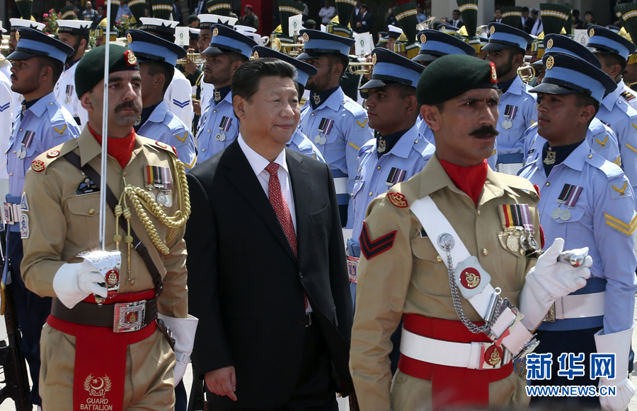 4月20日,国家主席习近平在巴基斯坦首都伊斯兰堡出席巴基斯坦总统侯赛因和总理谢里夫共同举行的欢迎仪式。 新华社记者 庞兴雷 摄