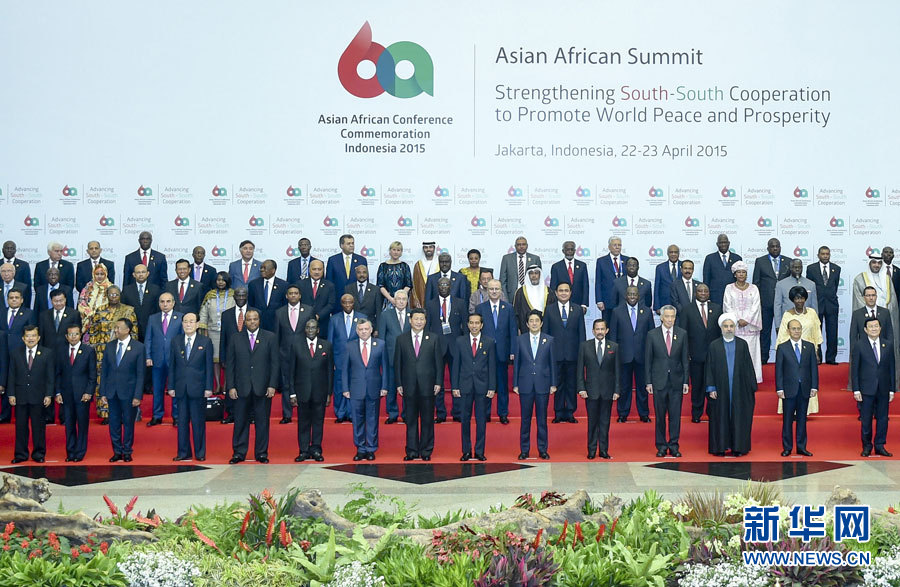 4月22日,国家主席习近平在印度尼西亚首都雅加达出席亚非领导人会议开幕式并发表讲话。这是与会国家和国际组织的领导人或代表集体合影。新华社记者 张铎 摄