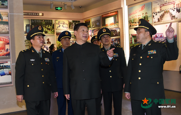 中共中央总书记、国家主席、中央军委主席习近平5日到第13集团军视察。这是习近平视察集团军军史馆。 中国军网记者 冯凯旋 摄