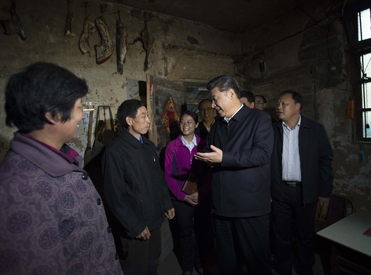这是4月24日下午,习近平在六安市金寨县花石乡大湾村村民陈泽平家中看望。新华社记者 李学仁 摄