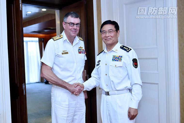 5月13日上午,中央军委联合参谋部副参谋长孙建国海军上将在军委国际军事合作办公室会见来访的澳大利亚国防军副司令雷蒙德·格里格斯海军中将。