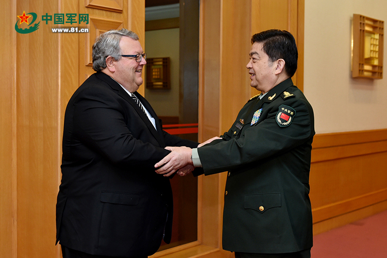 10月12日,国务委员兼国防部长常万全今天上午在八一大楼会见了来华出席第7届香山论坛的新西兰国防部长格里·布朗利。李晓伟摄