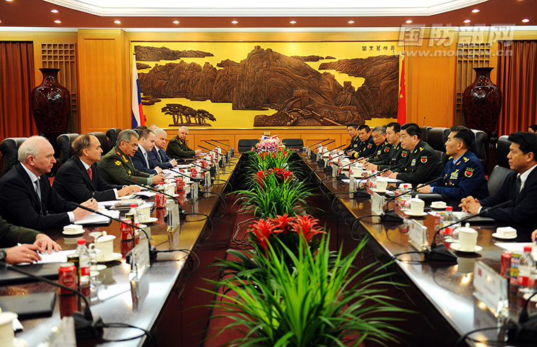 11月23日,国务委员兼国防部长常万全与俄罗斯国防部长绍伊古举行会谈。穆瑞林 摄