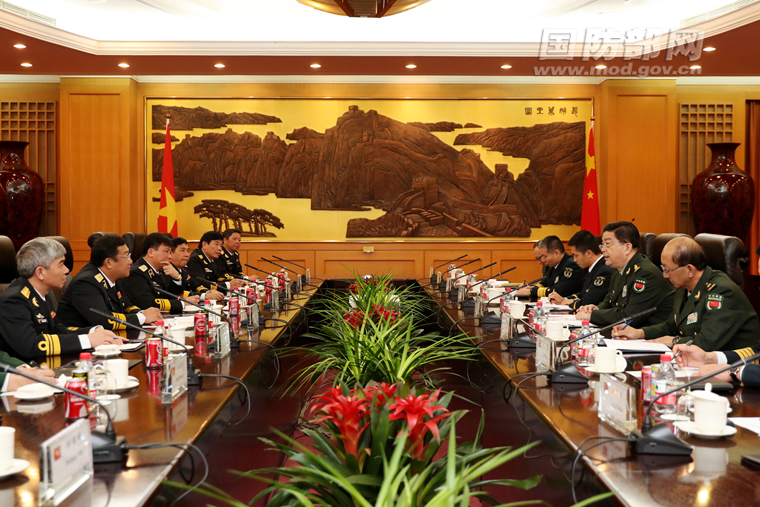 15日下午,国务委员兼国防部长常万全在八一大楼会见了来访的越南海军司令范怀南。李晓伟 摄