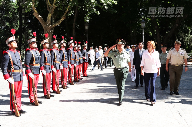 6月13日,中央军委副主席范长龙在马德里会见了西班牙国防大臣德科斯佩达尔。会见前,德科斯佩达尔为范长龙举行欢迎仪式。李晓伟 摄
