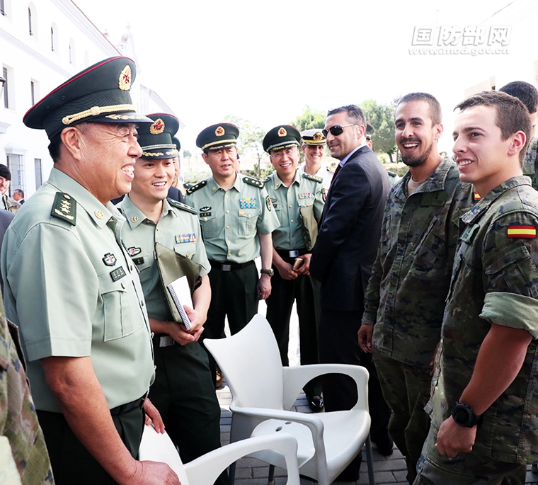 6月13日上午,中央军委副主席范长龙参观西班牙陆军12旅时与官兵亲切交流。李晓伟 摄