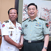 8月31日上午,国务委员兼国防部长常万全在八一大楼会见了来访的柬埔寨海军司令迪文。李晓伟 摄