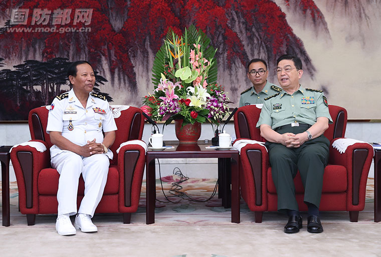 8月31日上午,国务委员兼国防部长常万全在八一大楼会见了来访的柬埔寨海军司令迪文。李晓伟 摄