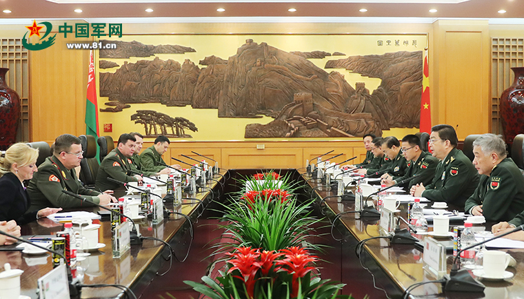 10月30日下午,国务委员兼国防部长常万全在八一大楼与来访的白俄罗斯国防部长拉夫科夫举行会谈。李晓伟 摄