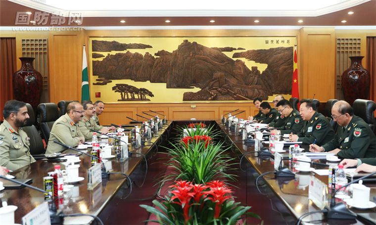 11月18日上午,中央军委委员、军委联合参谋部参谋长李作成在八一大楼会见来访的巴基斯坦陆军参谋局长比拉尔。李晓伟 摄