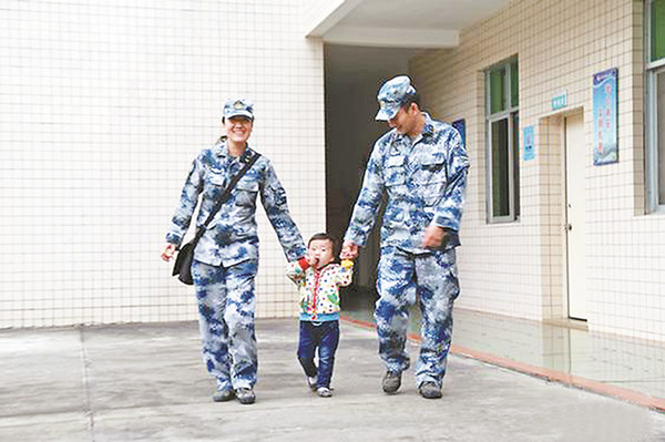 上士李明和四级军士长潘艳是广空某场站一对士官夫妻。作为空军首批特招女士官,潘艳从普通护士干到了人人敬重的护士长,从青春女兵成了幸福的妈妈,丈夫李明是空勤灶的一名上士。从2005年相识,到2013年结婚,两人对他们战斗和生活的场站充满了感情。今年,这对幸福的老兵即将告别军营退役。