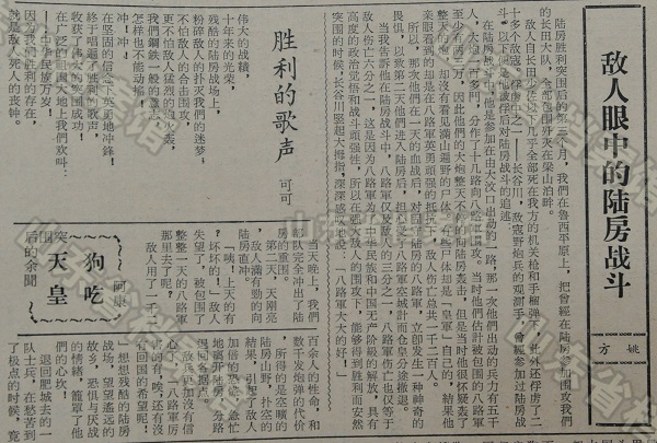 1941年5月10日,《大众日报》登载梁山歼灭战中俘虏日军对陆房突击战的供述。