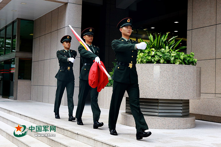 驻港部队举行升旗仪式庆祝香港回归19周年