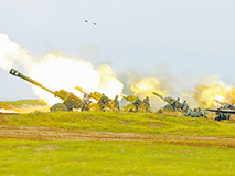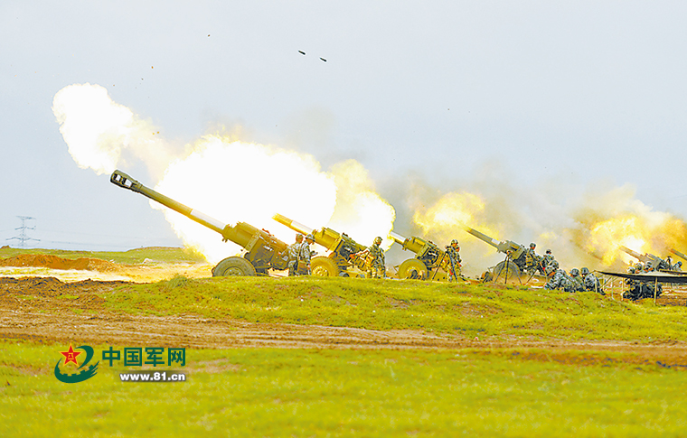 该旅火炮群对“敌”阵地实施火力覆盖射击。何 彪摄