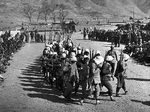 这张照片摄于1943年,极具历史穿透力。透过这支训练中的太行山裹脚女自卫队,当时的家国境况,救亡图存的急迫,凸现在眼前,令人由然地感叹中华民族抗战之艰辛,中国民众保卫家园之决心,八路军组织动员之效率。(贡勉)
