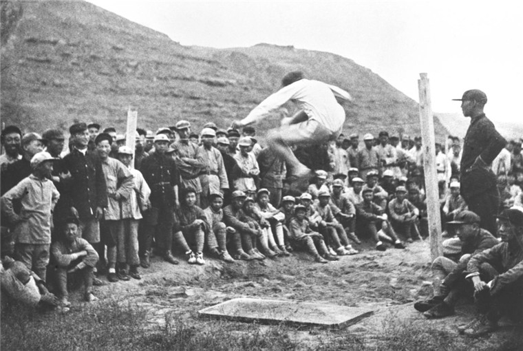 红军战士在跳高(资料照片)。新华社发(埃德加·斯诺摄)