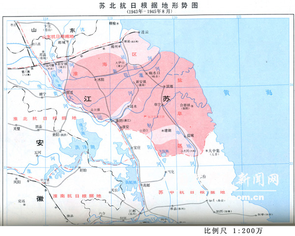 苏北抗日根据地:包括淮(阴)海(州)、盐(城)阜(宁)两个地区,物产丰富,人口众多。它是联结华北八路军和南方新四军的重要枢纽,是华中敌后抗战最有利、最能发展的地区,具有重要的战略地位。