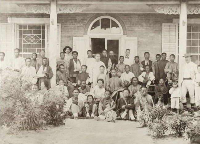 1895年,牛庄,英国商人招待受伤的中国人。