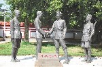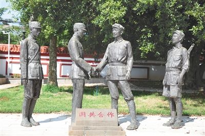 琼崖工农红军云龙改编旧址内的国共合作塑像。记者 张茂 摄