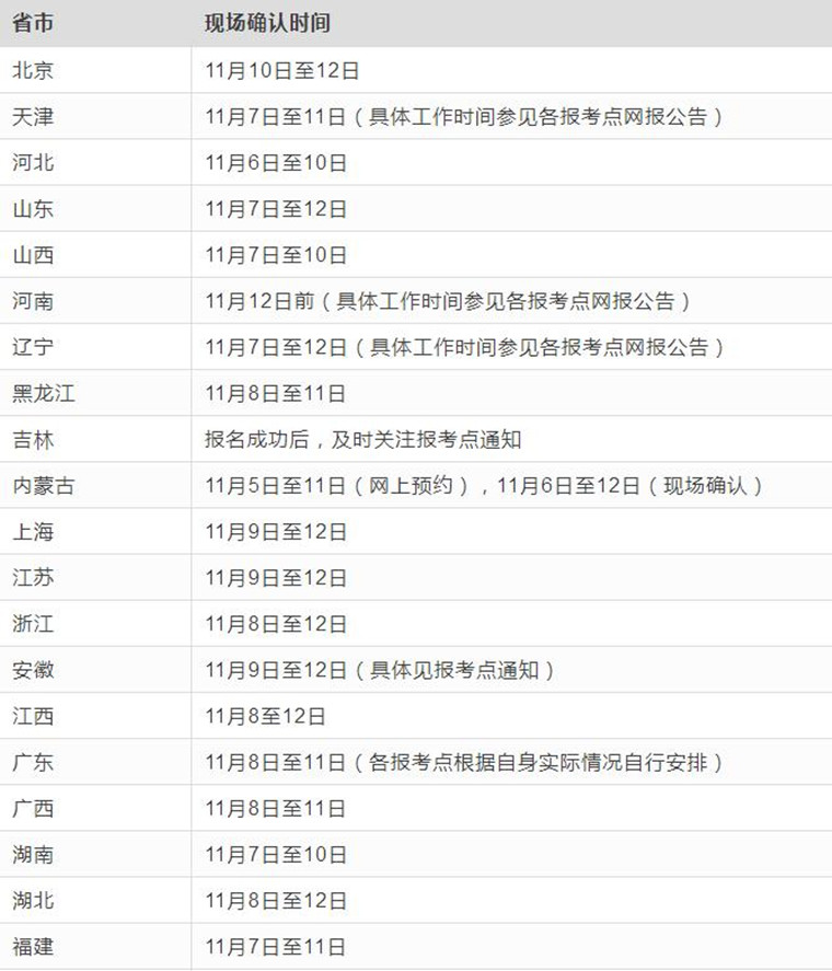 现场确认具体时间由各省级教育招生考试管理机构根据本地区报考情况自行确定和公布。考生要及时关注各省级教育招生考试管理机构发布的公告,在规定时间内到指定地方现场核对并确认个人网上报名信息,逾期不再补办。