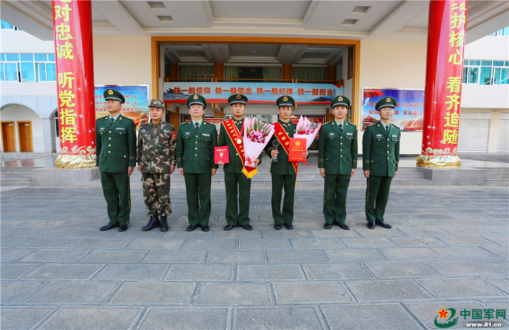 武警大理支队党委成员热情迎接武警部队“百名优秀士官”获奖者杨涛和武警云南总队“十大标兵士官”获奖者孙鸿健载誉归来,并与他们合影留念。 马亮志 摄