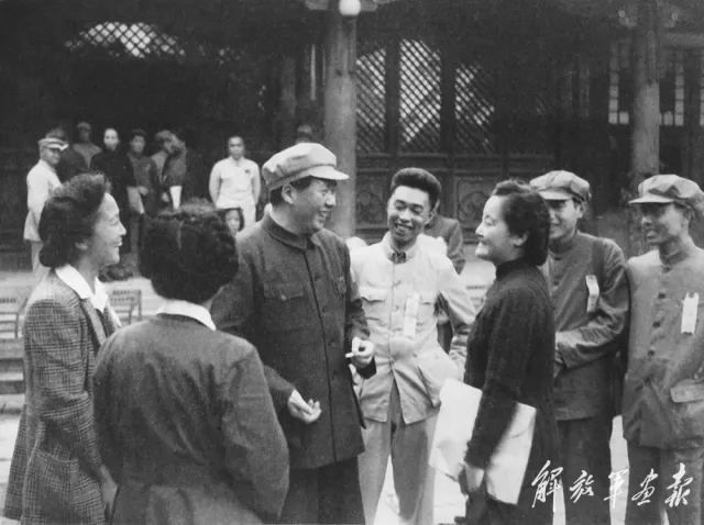第一届新政治协商会议筹备会期间,毛泽东与史良等在一起。