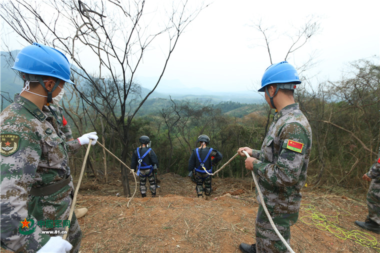 雷场勘察是每一个雷场作业任务的开始,扫雷官兵带着地图、北斗手持机和砍刀,在勘察雷场的同时,在密林里为进入雷场砍出一条人工通道。南方喀斯特地形造就了雷区的复杂地貌,平坦便于行走的山洼,往往就是一处雷场。进山的路为了避开雷场,不得不选择在悬崖峭壁上攀爬,人工搬运爆破筒也必须走这条路。驻地老百姓都把扫雷官兵称为“雷场‘攀岩人’”。