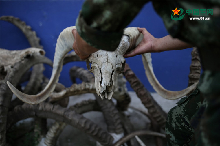 “森林卫士”从盗猎者手中搜缴的北山羊角。