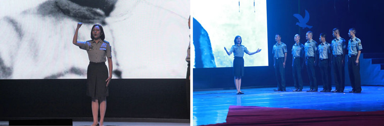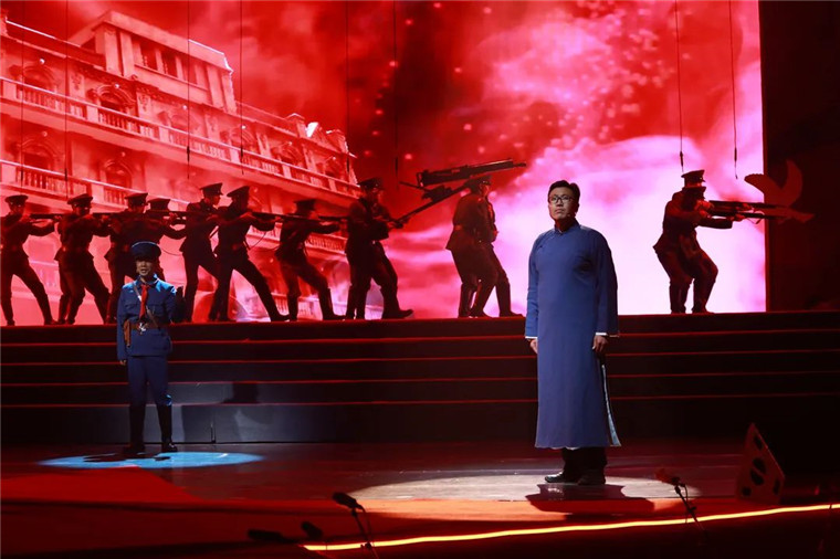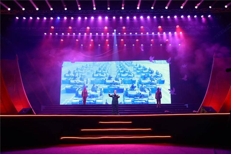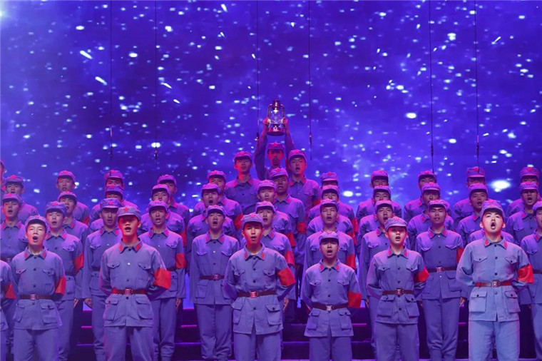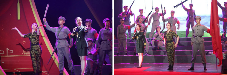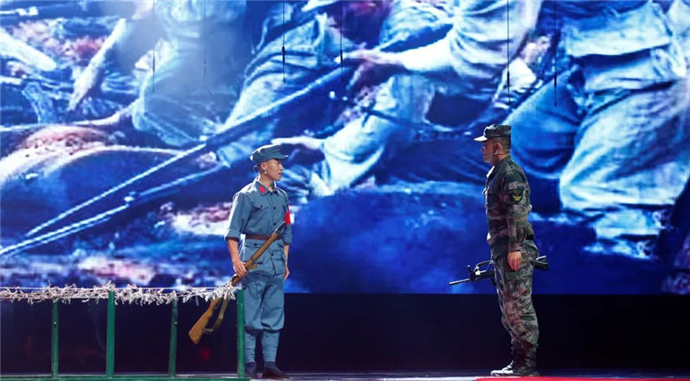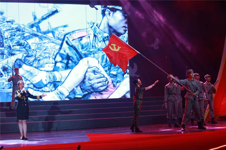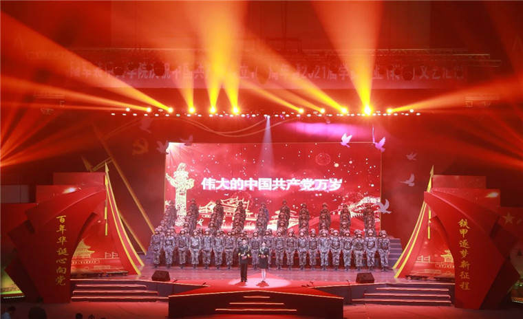 璀璨夺目的舞台效果、师生同台的真情演绎、形象逼真的历史还原、震撼人心的穿越对话、精彩纷呈的红歌劲舞,绘就恢宏壮美的视听盛宴,铺展开艰苦卓绝的百年奋斗路,历史厚重感、活力青春感、强军责任感、庄严仪式感,相得益彰,催人奋进。