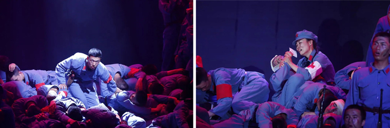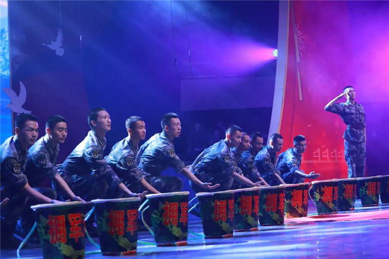 群舞《血战湘江》带领官兵回到了那万里长征的艰难历程,强渡大渡河、飞夺泸定桥……红军战士心中的理想和信念,支撑着他们从胜利走向胜利。
