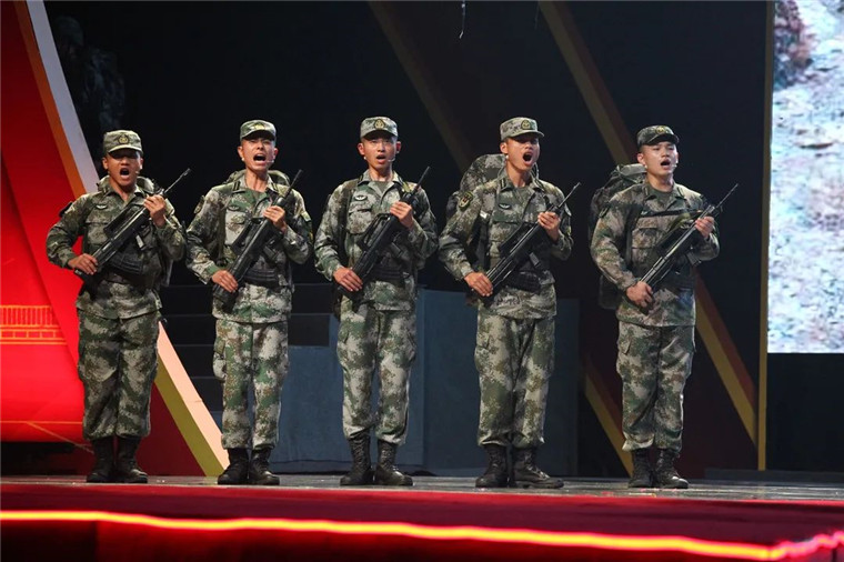 建党精神、红船精神、长征精神、抗美援朝精神、雷锋精神……党的精神谱系巧妙嵌入节目,官兵在演出中找到共鸣点、动情点和奋进点。