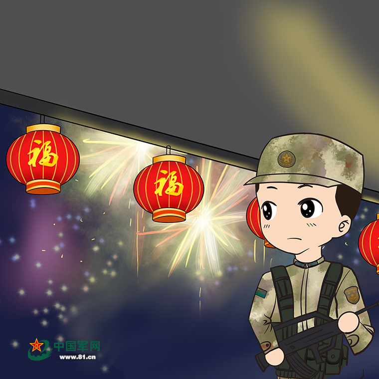 今年家里盖了新房,并燃放了烟花。看着视频里家人们欢聚一堂,我很开心,更感到光荣——我是一名军人,守护的是一份弥足珍贵的欢乐祥和。身后的焰火点亮了夜空,我把手里的钢枪握得更紧了。