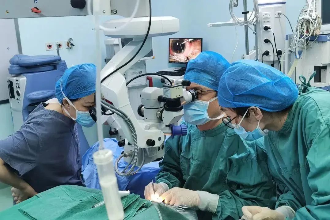 △第一附属医院眼科高玉教授(中)进行手术指导