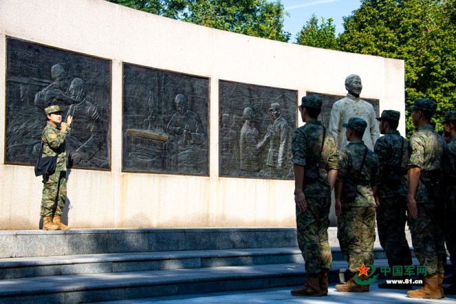 学员们在英烈事迹浮雕墙回顾“子弟兵的母亲”戎冠秀的深厚情感与无私奉献,感悟“军爱民,民拥军”的内涵深蕴。