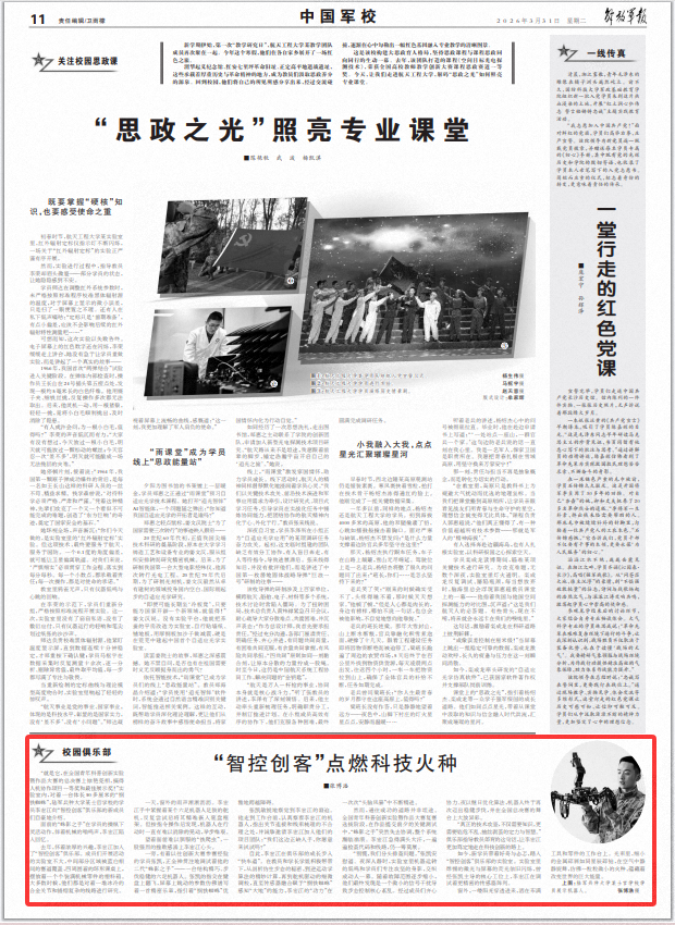 “就是它,在全国青年科普创新实验暨作品大赛的总决赛上惊艳亮相,摘得人机协作项目一等奖和最佳展示奖!”实验室内,对着一台体长50多厘米的“钢铁蜘蛛”,陆军兵种大学某士官学校的学员李宏江向“智控创客”俱乐部的新成员们自豪地介绍。