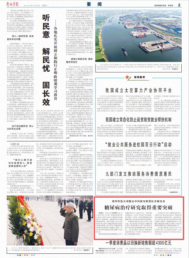 据了解,团队基于该自主知识产权研发的“异体人再生胰岛注射液”,已获得新药临床试验批件,相关临床试验正有序开展。