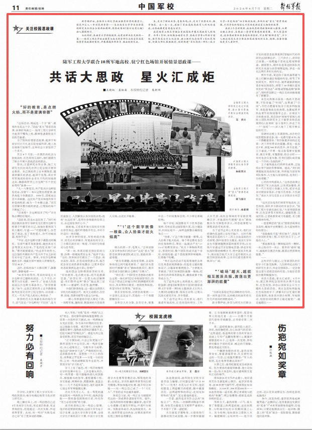 这些评价与建议,让导演团队的年轻学子们备受鼓舞。几位即将走出校门的研究生表示,毕业回到部队,一定会借鉴这套大思政活动的经验,为基层思想政治教育赋能加力。