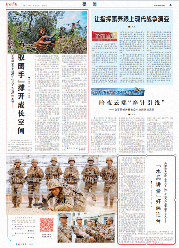 “学兵们都来自基层部队,其中不乏多次参加大项任务的精武尖子。”该大队领导介绍,充分发挥学兵在教育中的主体作用,是他们创新教育方式、拓展授课内容的一个重要抓手。近年来,该大队持续开展“水兵讲堂”活动,邀请学兵上讲台、当主角,分享励志故事,有效提升了大队思想教育的吸引力和实效性。