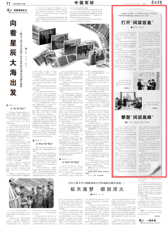 春日校园,书香满盈。“4·23”世界读书日前后,全军各院校开展各种形式的趣味活动,鼓励学员多读书、读好书。
