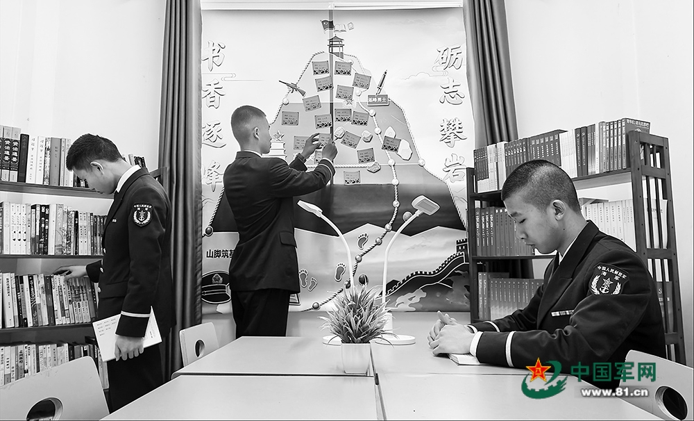 学员何宇祥一开始对活动并不积极:“训练任务本来就重,还要挤时间写读书心得。”改变发生在一个周末。何宇祥路过“图书角”,看见彭永泽坐在一旁边读边记。“阅读进度墙”上,彭永泽的“岩点”贴纸已来到“高峰突破”,而他的贴纸还迟迟没有贴上。“你这进度够快啊,怎么做到的呀?”何宇祥忍不住问。