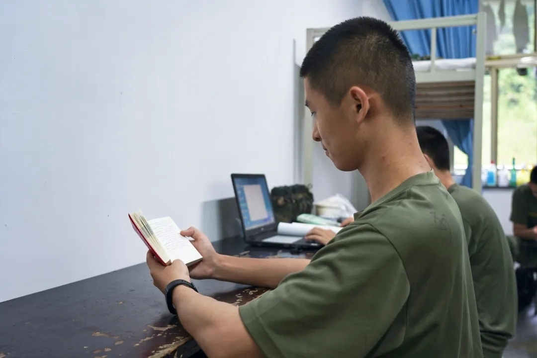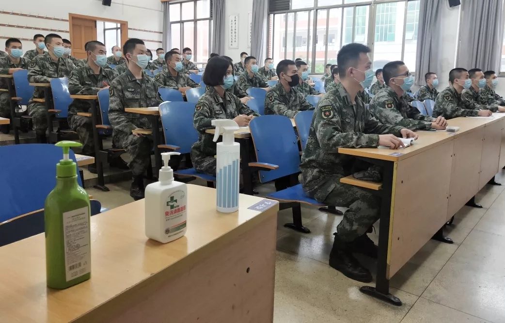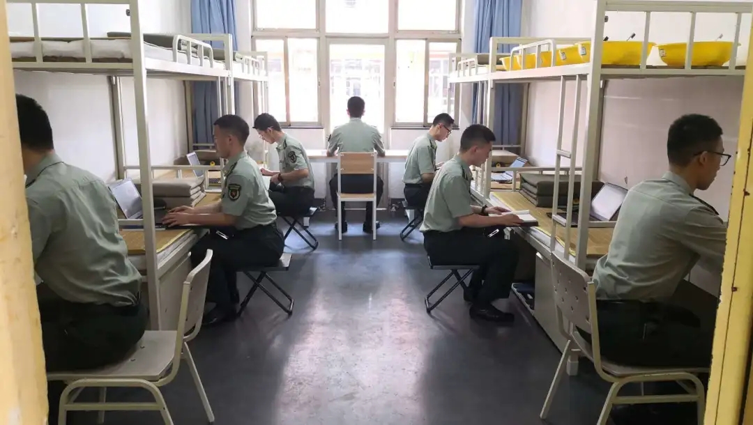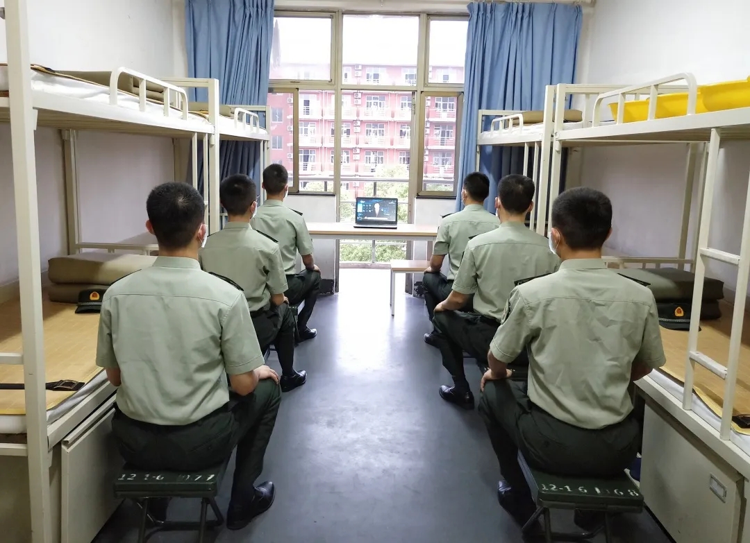 每天早八点,宿舍变成了“小教室”,学员在宿舍内佩戴口罩,交叉分坐,按照教员要求进行线上学习。同时,不宜进行线上教学的军事类课程也逐步开课,该类课程严格实行小班教学,按照学校要求进行严格的防疫措施,确保线下教学安全有序。