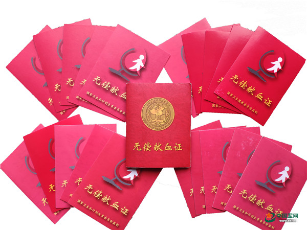 21张无偿献血证书。