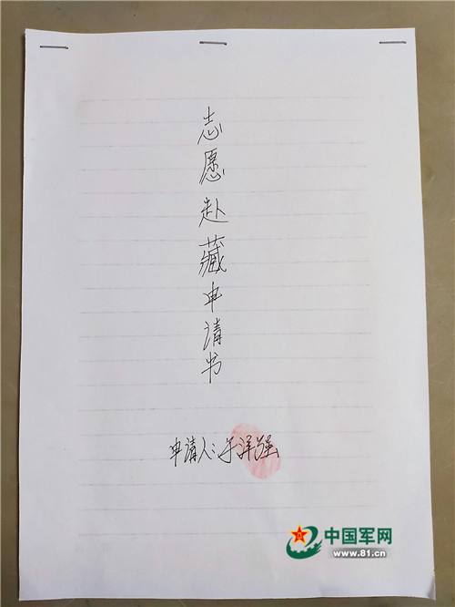 志愿赴边申请书。