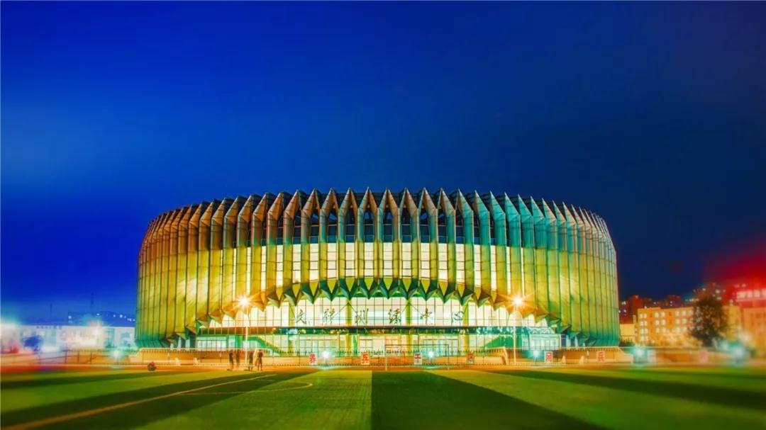 锋利铁甲凝成的文体训练中心,在夜幕下如黑金般璀璨。