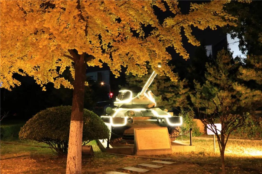 “功臣号”坦克车身披霓虹,显现出一抹宁静。曾几何时,它曾驰骋疆场,立下赫赫战功。如今它已归于沉静,在静谧的夜色中诉说着那峥嵘岁月。